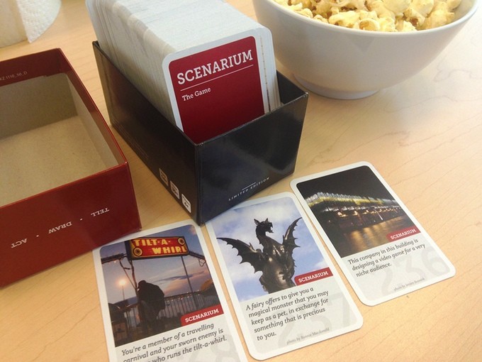 The campaign eventually gathered 280 financial backers, and Dinosaur Robot Games placed an initial order of 250 sets of Scenarium, a game consisting of 300 cards that challenge players to either tell a story, draw something, or act out a scene.